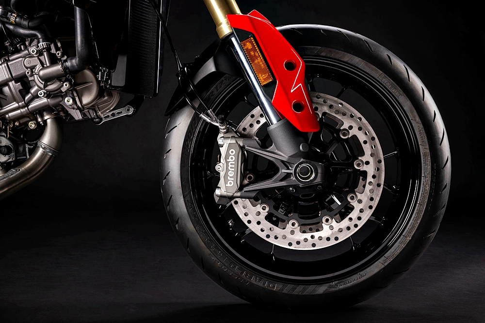 - Sistem brek cakera dengan kaliper Brembo M4.32