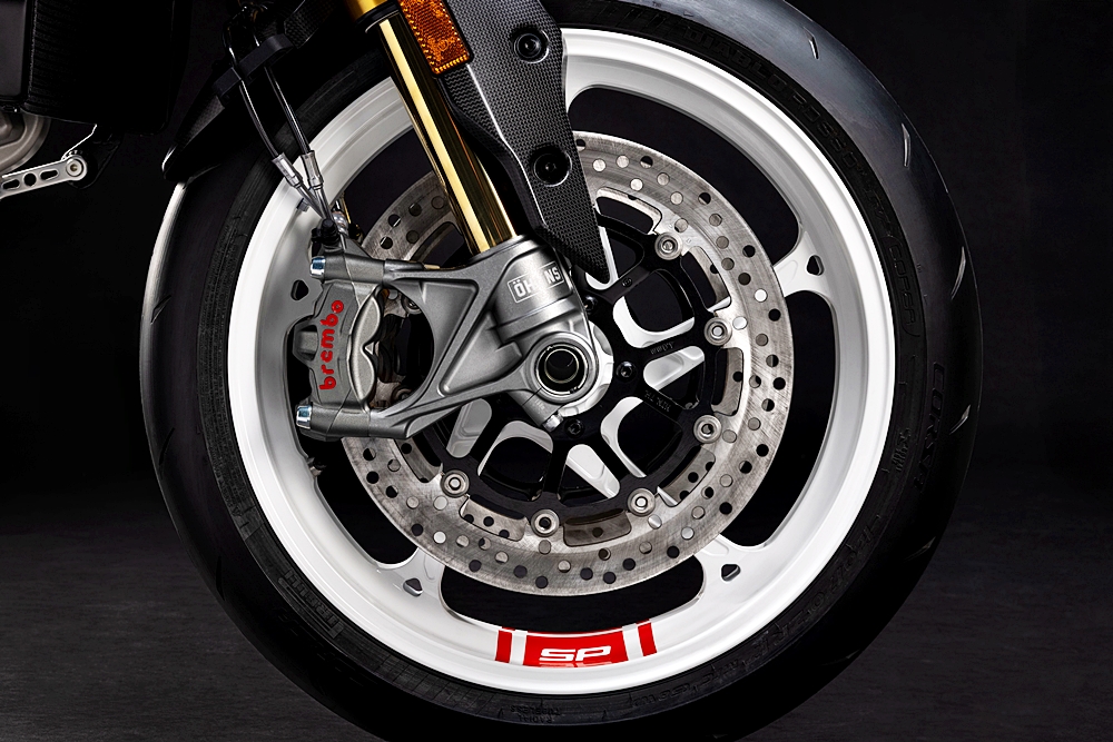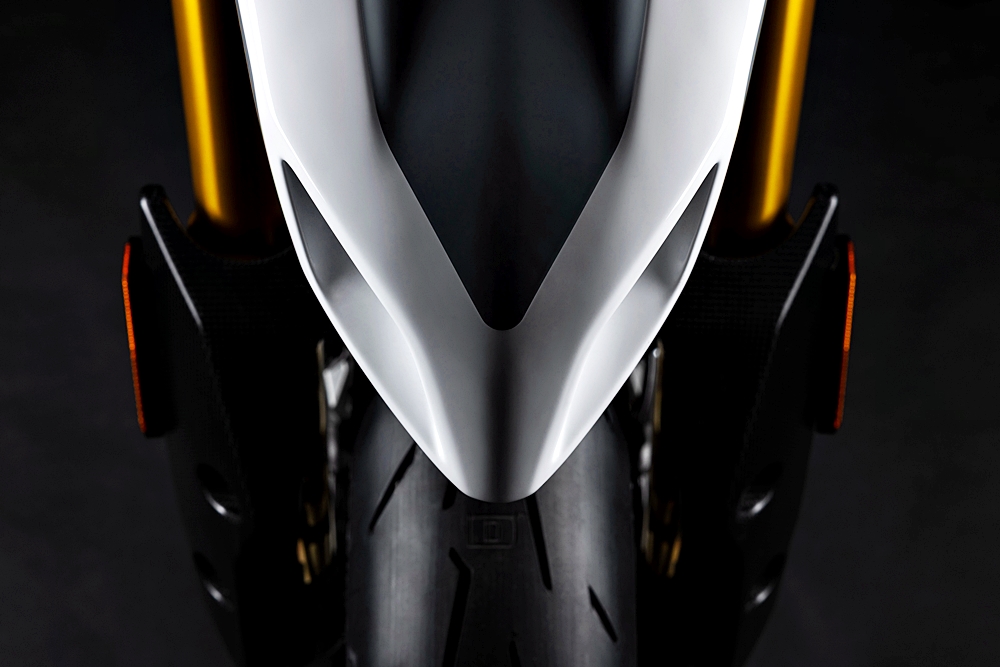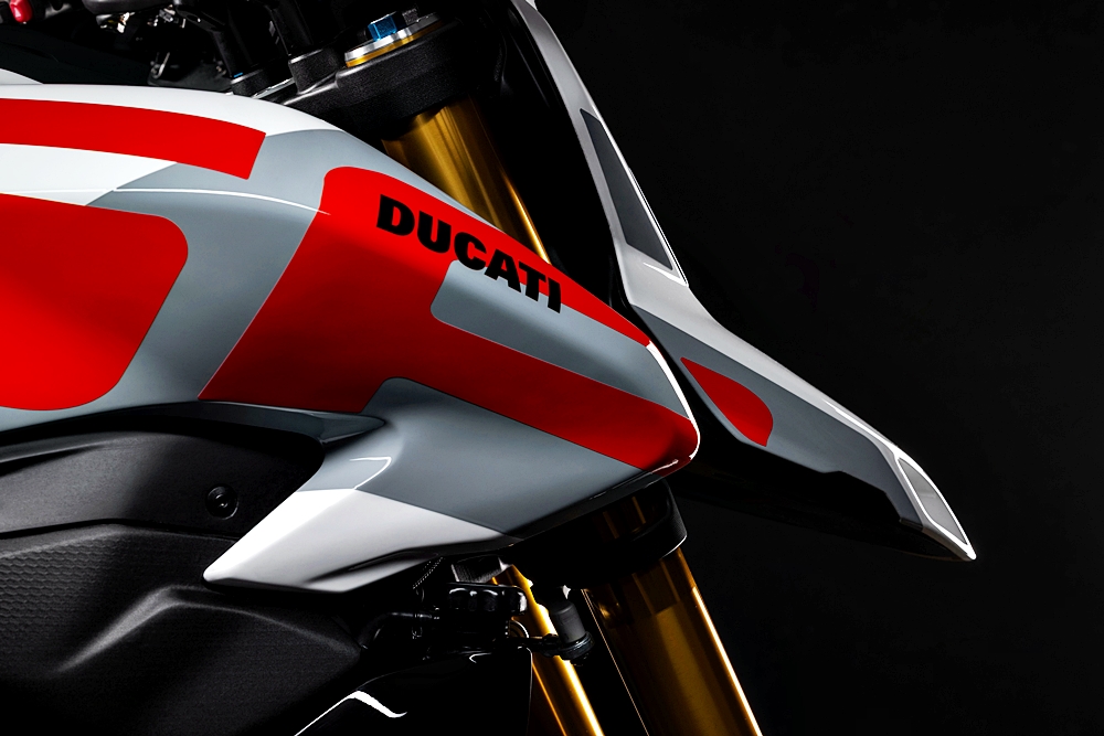 - Ciri lain Sistem Multimedia Ducati (DMS) dan navigasi selekoh demi selekoh (Turn-by-Turn), bateri litium, fender depan gentian karbon