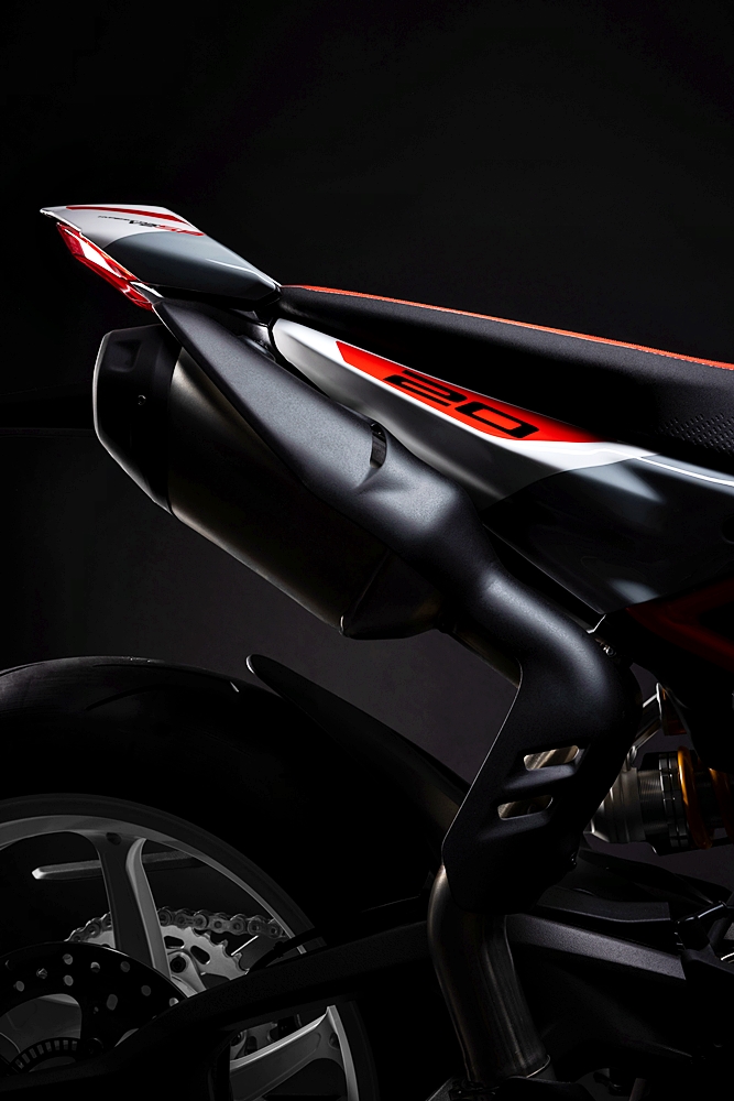 Ada juga damper bunyi kembar yang dihomologasi (tidak sah di jalan raya luar kawasan EU5+) dengan sarung titanium dan penutup karbon yang turut dibangunkan dengan kerjasama Termignoni.