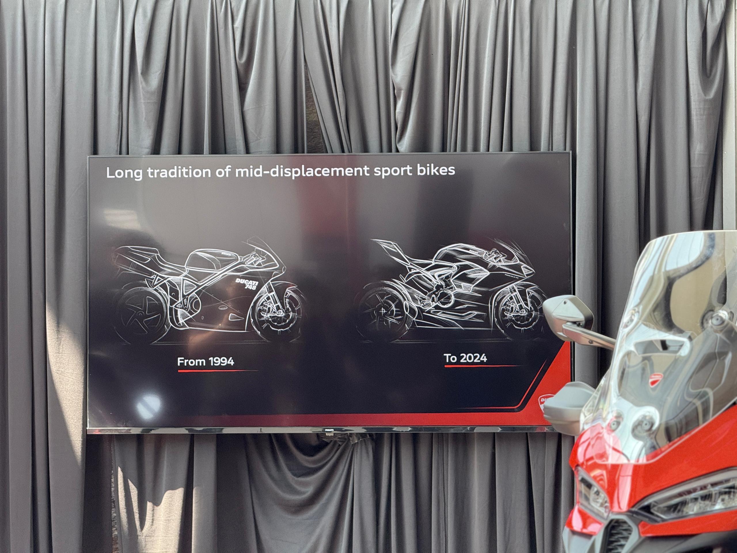 Rekabentuk mengambil ilham Panigale V4 dengan lampu LED penuh, aerodinamik tajam dan ekor gaya MotoGP.