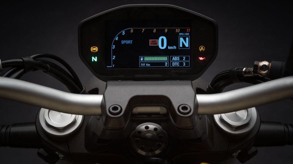 - Buat pertama kalinya Monster didatangkan dengan meter TFT berwarna bersaiz sederhana dengan paparan gear semasa dan indikator minyak.
