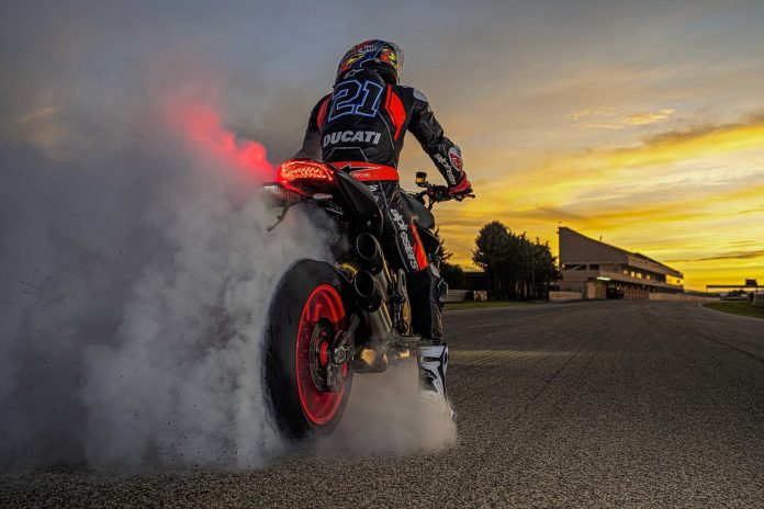 - Berat cuma 166kg selepas menanggalkan frem trellis dan digantikan unit lebih ringan 4.4kg, diambil daripada Panigale V4 dan Multistrada V4. Berat badan baharu ini turut disumbangkan penggunaan rim aluminium (-1.7kg), swingarm baharu (-1.6 kg) dan subfrem belakang dengan teknologi polimer diperkuat gentian kaca (FRP) (-1.9kg).