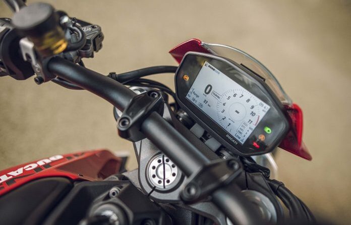 - Kluster instrumen TFT berwarna 4.3 inci dengan elemen gaya Panigale V4.