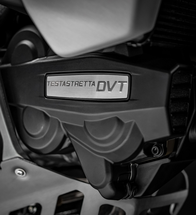 - Pakej bantuan elektronik standard – Belokan ABS Bosch, Lampu Belok, Kawalan Wheelie (WC), Kawalan Traksi Ducati (DTC) dan Kawalan Pegun Kenderaan (VHC).