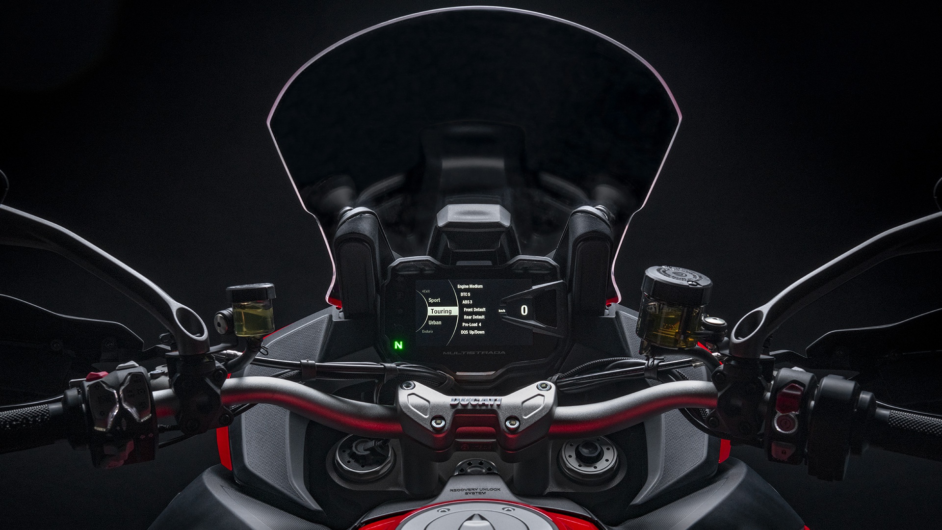 - Lampu depan dilengkapkan sistem Ducati Cornering Lights, suluhan lampu akan menyuluh mengikut hala belokan.