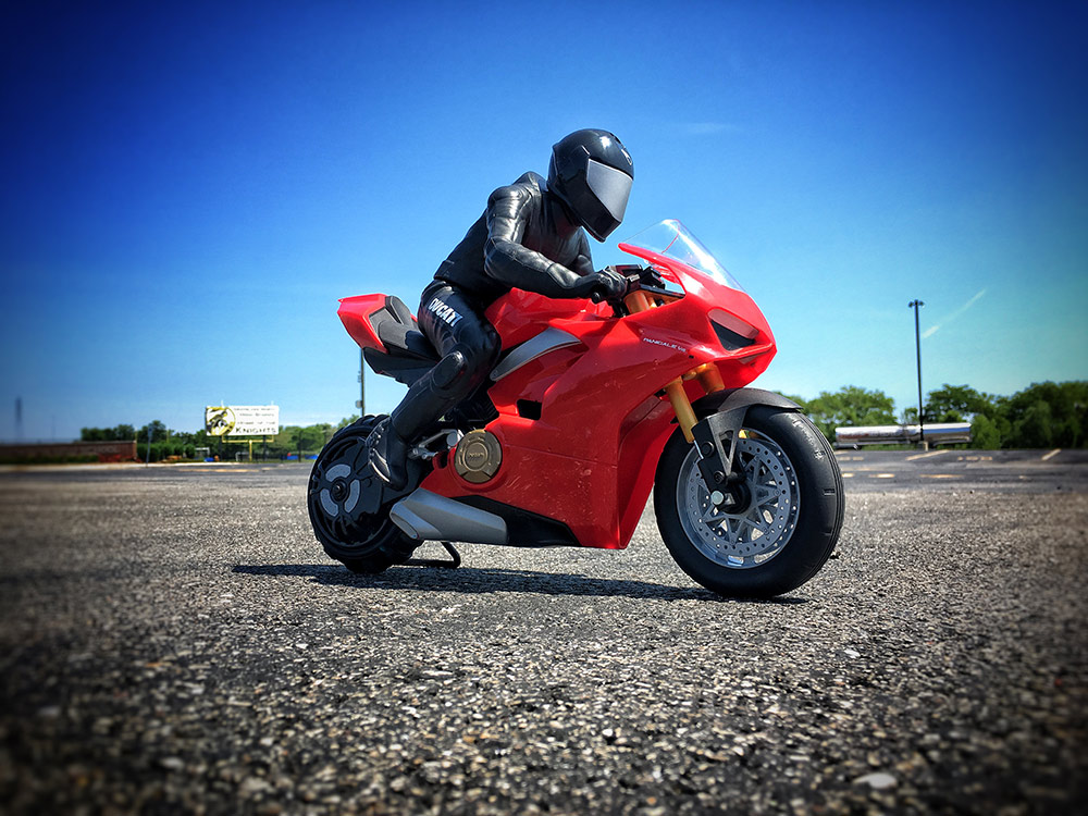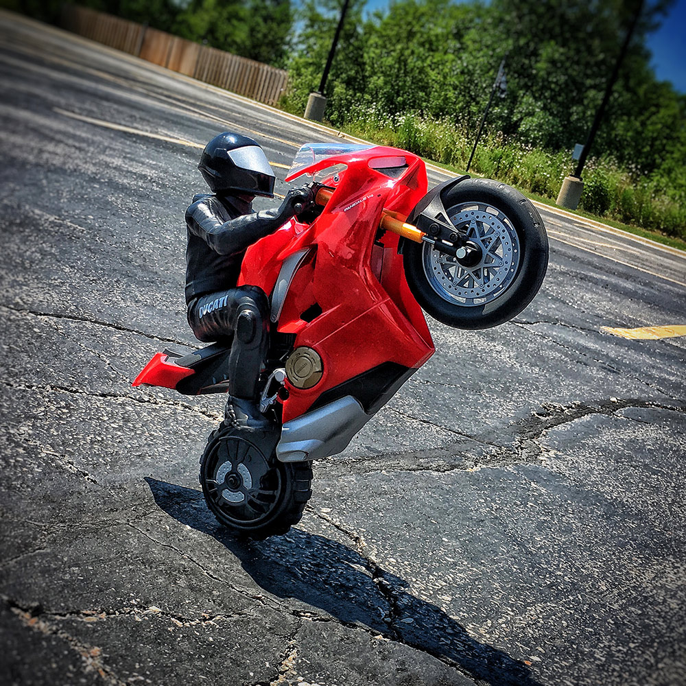 Lihat video di bawah ini, Panigale V4 S RC ini mampu mengangkat tayar depan tanpa sebarang bantuan roda tambahan dan dikawal sama seperti model Panigale V4 S sebenar menggunakan alat kawalan jauh.