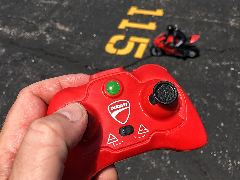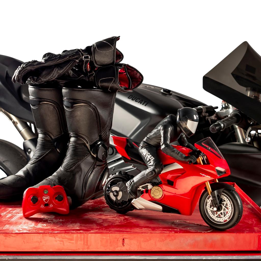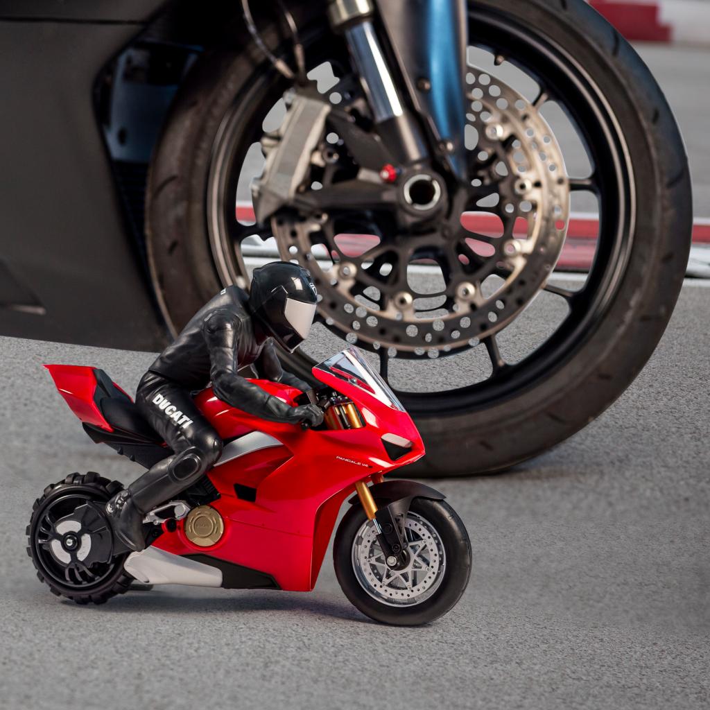 Panigale V4 S RC ini berukuran skala 1:6, dikeluarkan syarikat mainan dari Kanada, Spin Master Toys pada harga £149.99 (RM754). Mainan kawalan jauh ini juga model RC pertama dunia memiliki teknologi imbangan yang membolehkan ia beraksi wheelie.