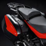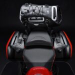 Antara aksesori yang boleh dikira wajib untuk motosikal begini ialah kotak simpan barang. Ducati menawarkan rak aluminium belakang dan kotak sisi keras (rigid case) yang dibuat daripada bahan berkualiti tinggi supaya tidak dimasuki air dan tahan lasak.