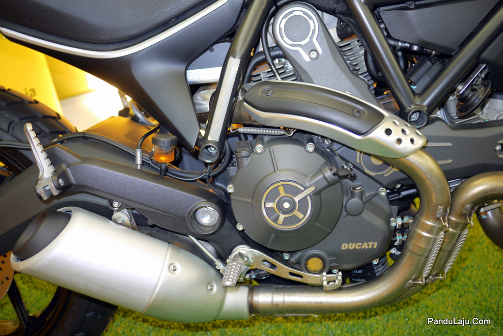 Interpretasi kontemporari daripada ikon asli tahun 1970, Ducati Scrambler dijana unit enjin suntikan bahan api L-Twin bersesaran 800cc berbanding penggunaan ‘jantung’ 1-silinder 250cc yang asal. Hasil janaan enjin baharu itu, ia mampu menghasilkan kuasa sehingga 75hp
