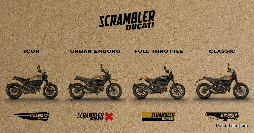 Ducati Scrambler hadir dalam empat varian yang dinamakan sebagai Icon, Urban Enduro, Full Throttle dan Classic.