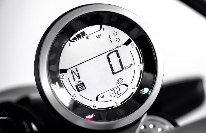 Bagaimanapun, tidak seperti model lawan itu, Scrambler Icon Dark dilengkapi ciri ABS belokan dual-saluran seperti Scramble 803cc lain, berserta instrumen LCD, termasuk indikator gear dan tahap minyak.