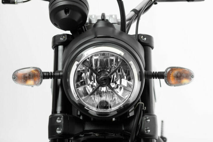 Mendapat kemasan hitam kusam, dengan frem trellis twin-spar hitam dan pelana dengan rim kelabu, jentera baharu ini turu memiliki tangki minyak ‘air mata’ yang siap dengan panel sisi aluminium boleh tukar.