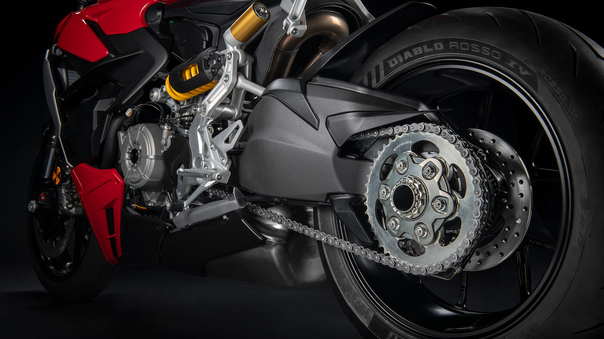 - Nisbah gear dipendekkan berbanding Panigale V2 untuk pikap lebih kuat.