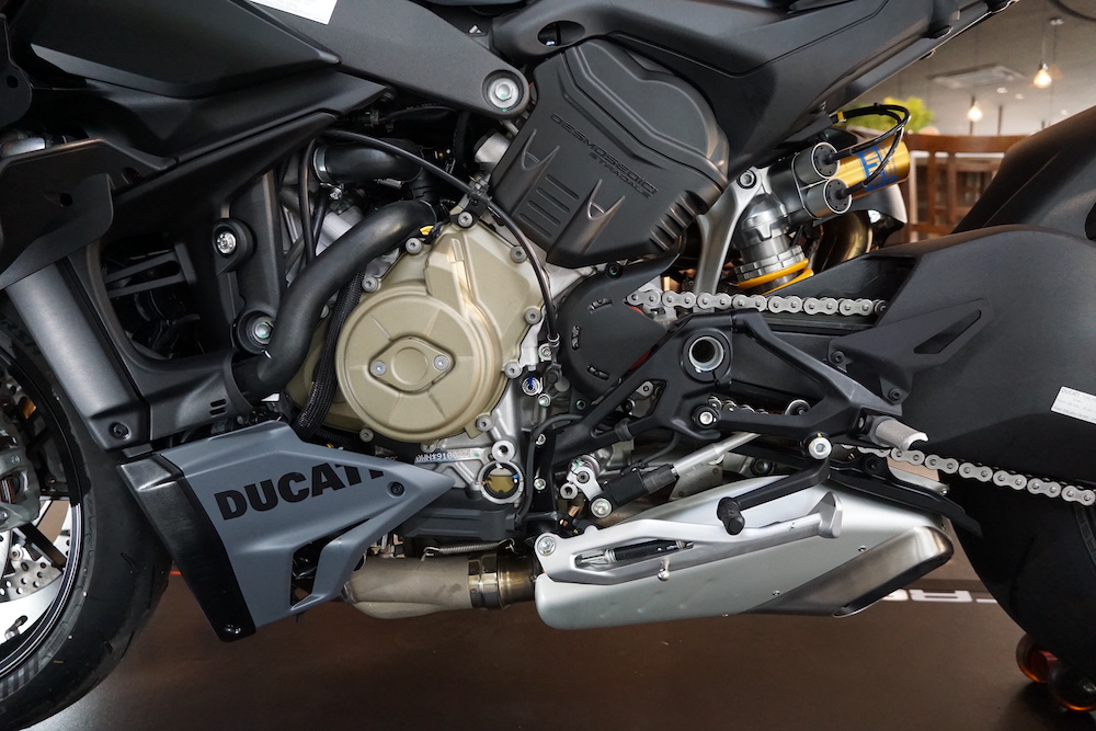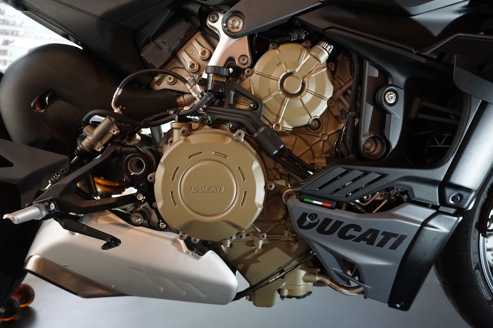 - Dijana enjin Desmosedici Stradale 90º V4 1,103cc penyejukan cecair dengan sistem suntikan bahan api elektronik (EFI) berkuasa 208hp @ 13,000rpm, dan tork 123Nm @ 9,500rpm.