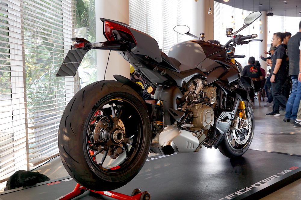 Ada dua warna pilihan disediakan, iaitu Ducati Red (merah) dan Grey Nero (kelabu) pada harga jualan RM141,900. Berikut perincian Ducati Streetfighter V4 S (2023):