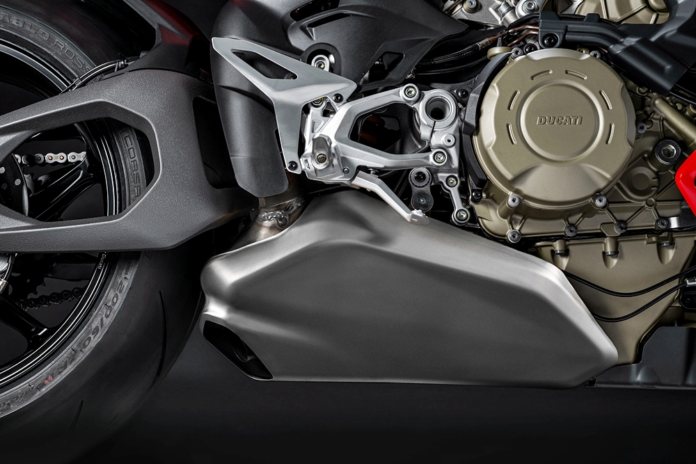 - Alternator dan pam minyak sama seperti Panigale V4 R dan dram gear sama digunakan pada Superleggera V4.
