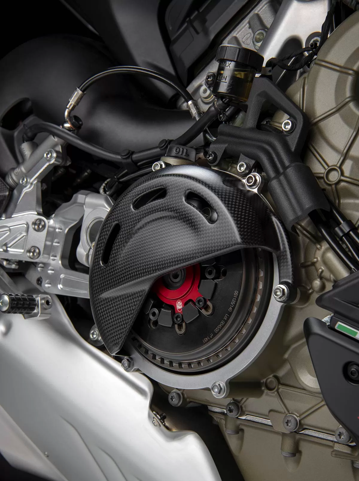 - Klac kering STM-EVO SBK supaya roda belakang tidak melompat ketika menurunkan gear agresif. Klac kering ini juga mengembalikan karakter bunyi yang dirindui peminat Ducati.