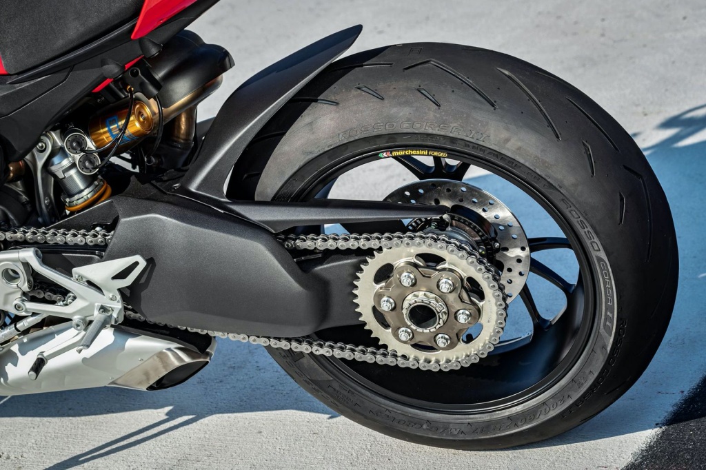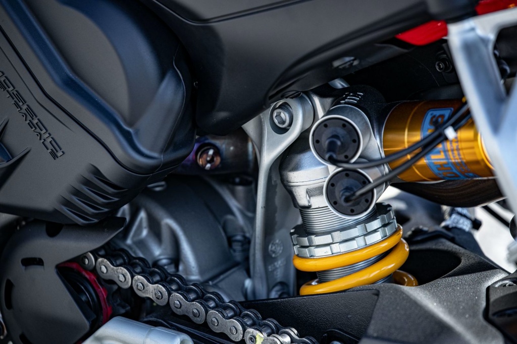 Model lebih berkuasa Streetfighter V4 S pula dilengkapi rim Marchesini dan sistem suspensi elektrik Öhlins boleh laras (fork depan NIX30 43mm dan monoshock TTX36), dan damper stereng. Sistem Ohlins Smart EC 2.0 generasi kedua itu menampilkan antaramuka mesra pengguna dan meningkatkan keupayaan sistem IMU 6D.