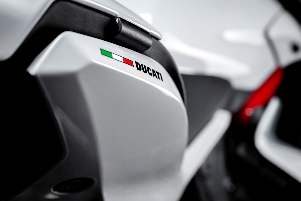 Warna Ducati Red (merah) pula memang menjadi identiti kuat untuk Ducati, tetapi pilihan warna putih Arctic White Silk nampak begitu serasi dan sepadan Ducati SuperSport 950 S (2024).