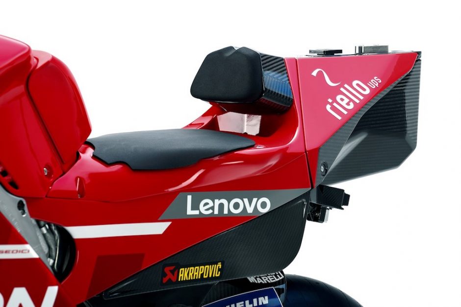 Jentera lumba baharu itu juga seakan mengimbau semula penampilan Ducati sedekad lalu, pada 2009 yang juga menggunakan seragam sama, dengan lebih banyak kemasan merah menggantikan putih dan kelabu yang menjadi warna utama jentera itu sejak beberapa musim kebelakang ini.