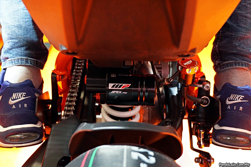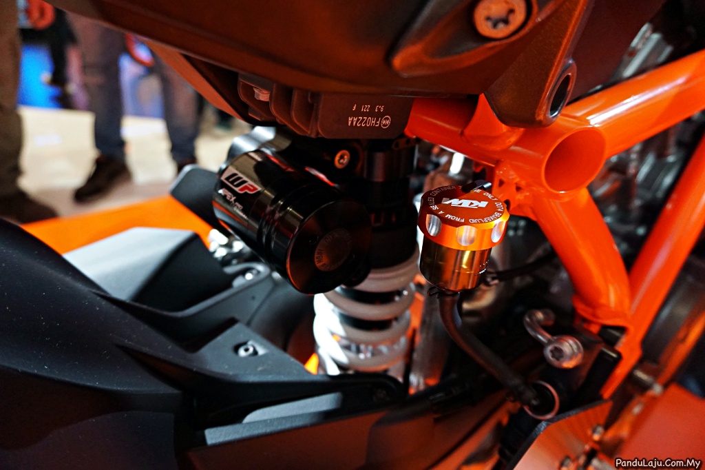 KTM turut mengemas kini bahagian suspensi menerusi unit fork WP 48mm di depan dan absorber WP di belakang dengan tabung minyak dan udara secara berasingan. Klamp tripel pada hendal menggunakan material aluminium tempa ringan yang menjanjikan ketangkasan pengendalian.