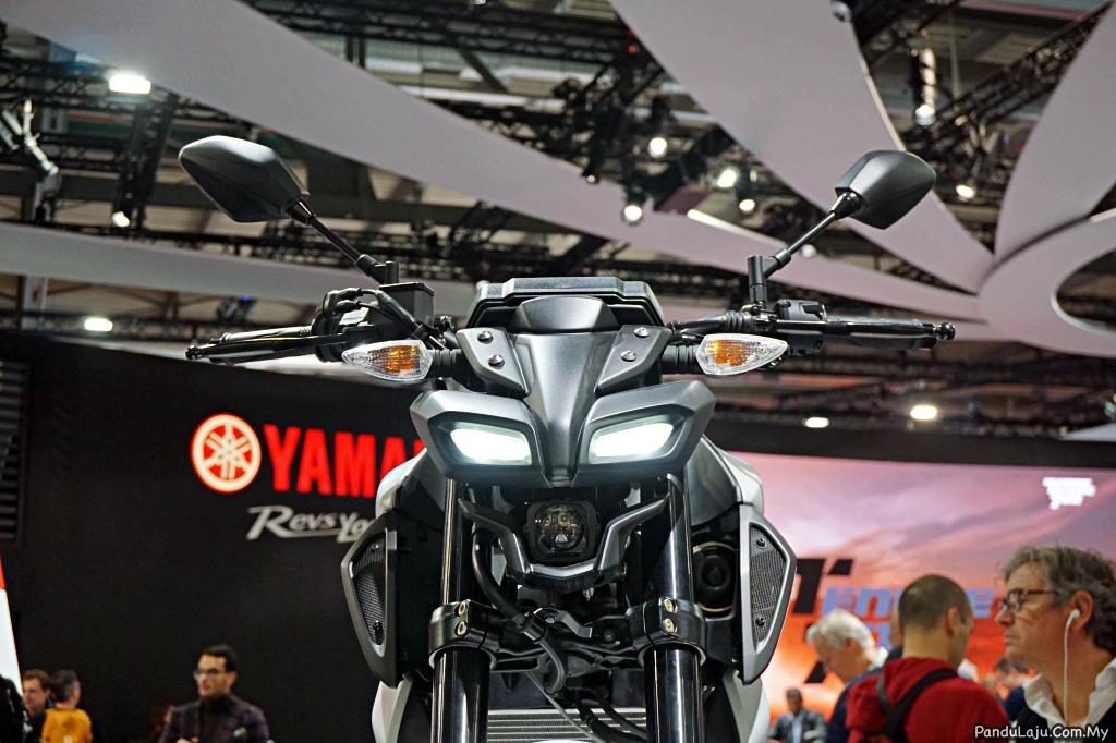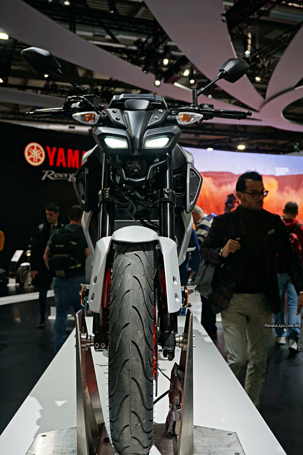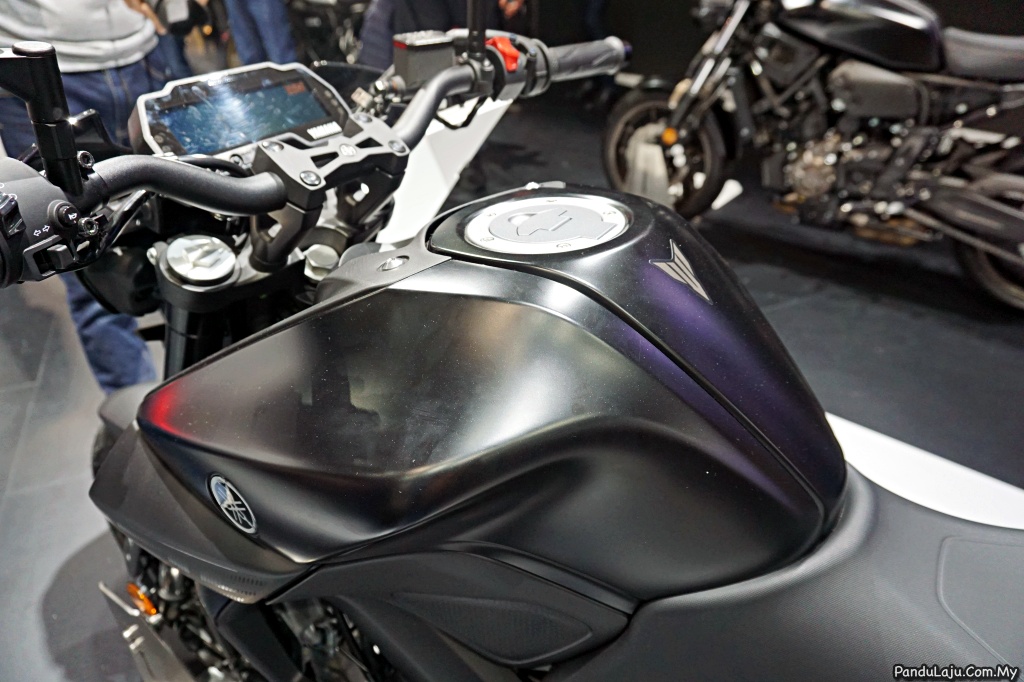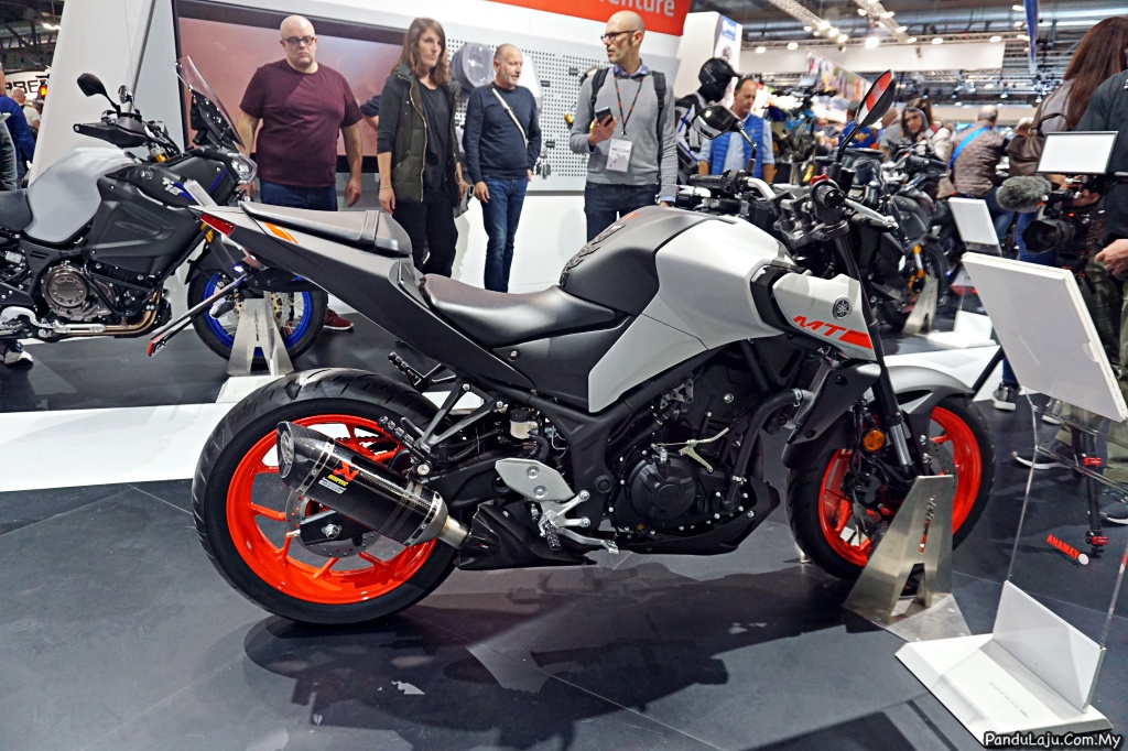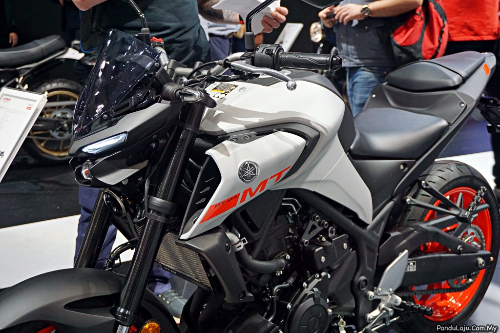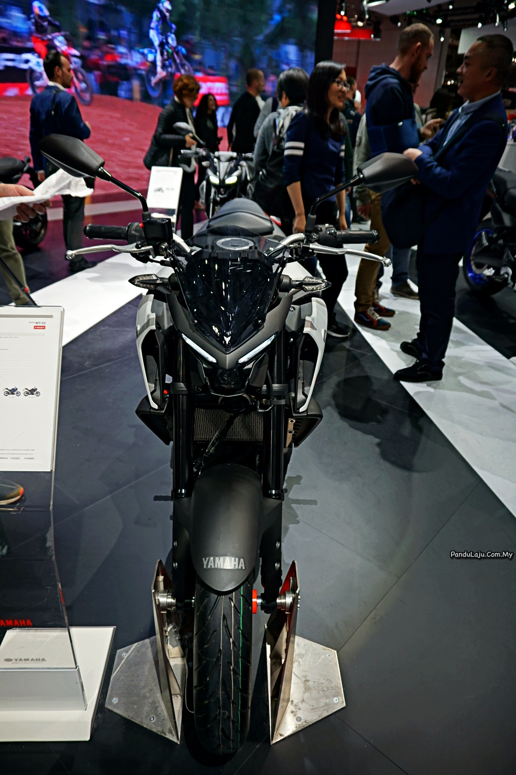 Abangnya, MT-03 turut dipamerkan di reruai Yamaha selepas pra-pelancaran model tersebut, Oktober lalu menerusi siaran video acah. Enjin 321cc berkenaan menghasilkan kuasa 41.4hp @10,750rpm dan tork 29.6Nm @ 9,000rpm, manakala hantaran kuasa ke roda belakang disalurkan menerusi transmisi klac manual 6-kelajuan.