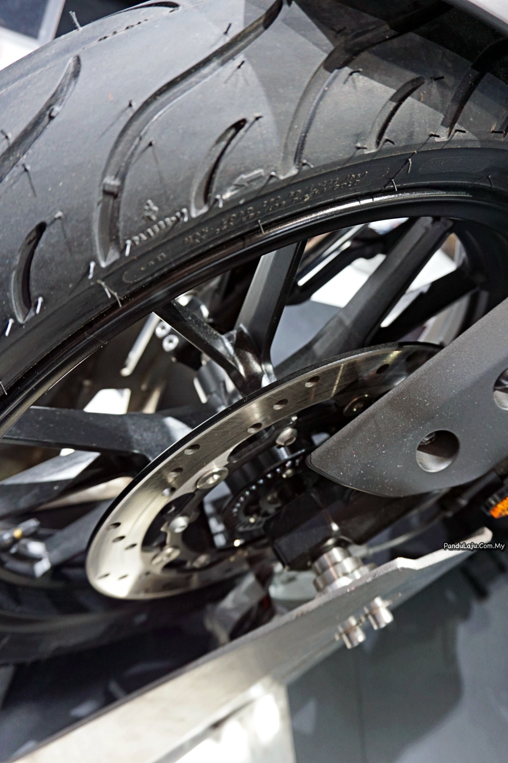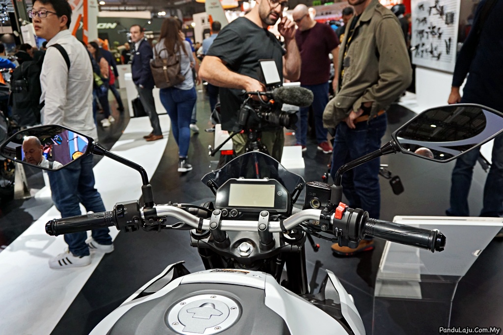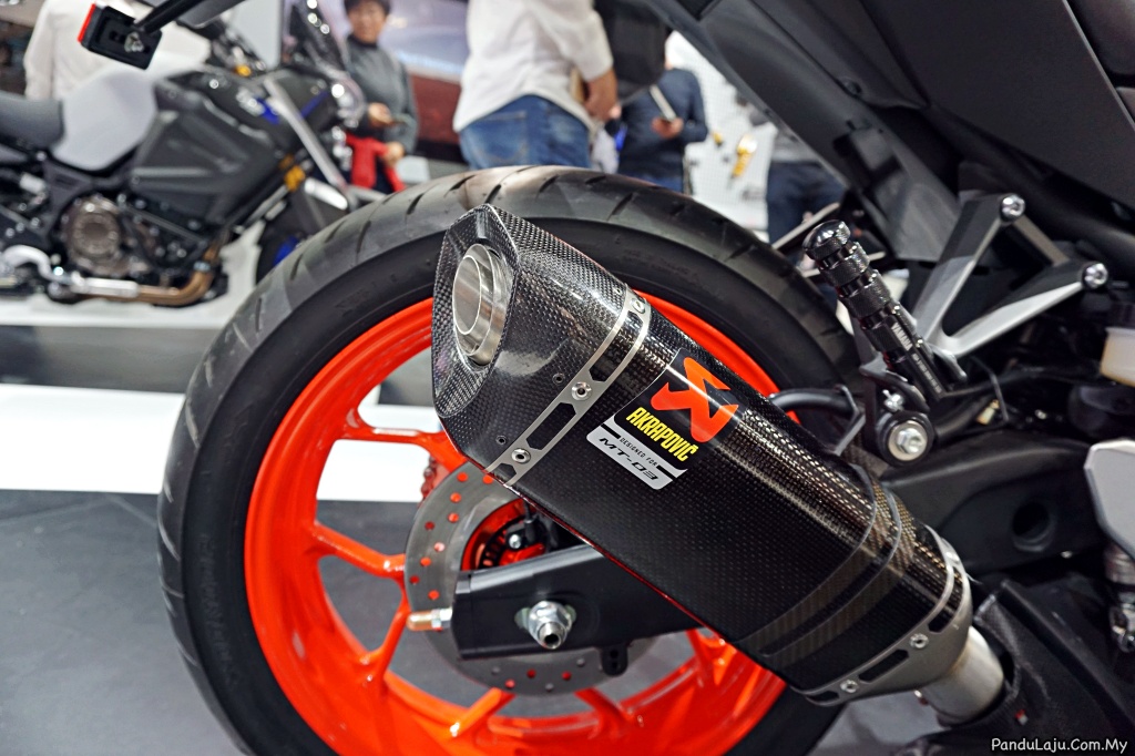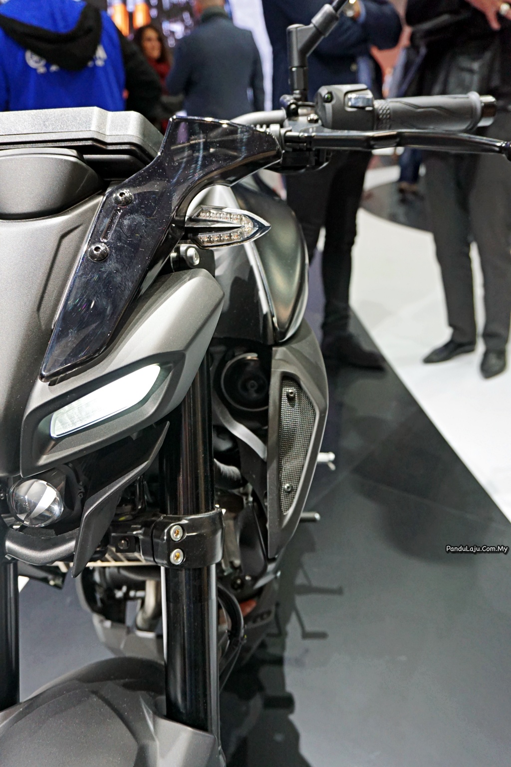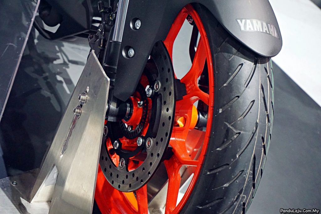 Abangnya, MT-03 turut dipamerkan di reruai Yamaha selepas pra-pelancaran model tersebut, Oktober lalu menerusi siaran video acah. Enjin 321cc berkenaan menghasilkan kuasa 41.4hp @10,750rpm dan tork 29.6Nm @ 9,000rpm, manakala hantaran kuasa ke roda belakang disalurkan menerusi transmisi klac manual 6-kelajuan.