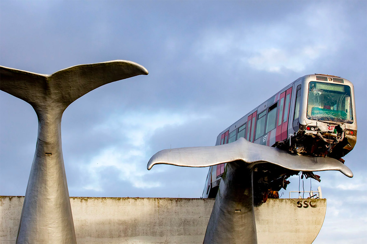 Ekor paus itu, dipanggil ‘Saved by the Whale’s Tail’ ialah arca ciptaan artis, Maarten Struijs kira-kira 18 tahun lalu. Dia sendiri terkejut kerana tidak menyangka arca ekor kembang setinggi 7 meter itu masih kukuh dan mampu menyelamatkan nyawa operator tren.
