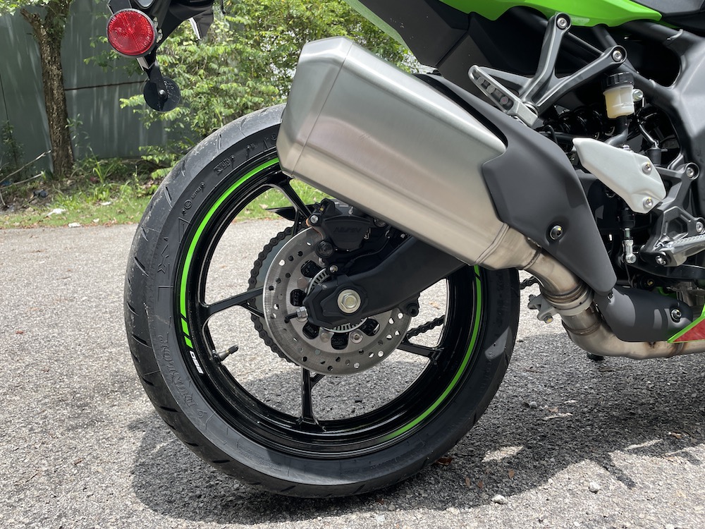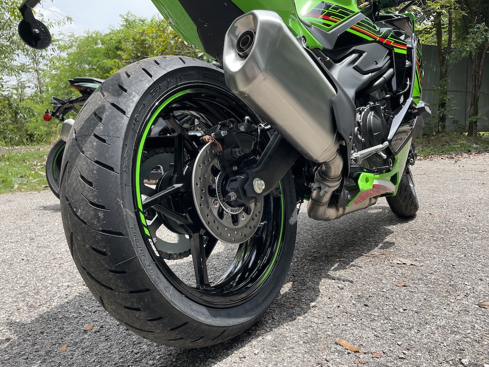 - Saiz tayar 110/70R17 (depan), dan 150/60R17 (belakang).