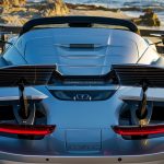 Warna perak dan jaluran biru serta perincian hitam Battista Targamerica datang daripada Testarossa Spider, begitu juga garisan melintang pada bukaan ruang but belakang.