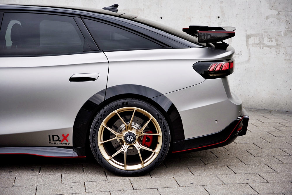 Dari segi penampilan, Volkswagen ID.X Performance menonjol dengan spliter depan dan difuser belakang daripada karbon.