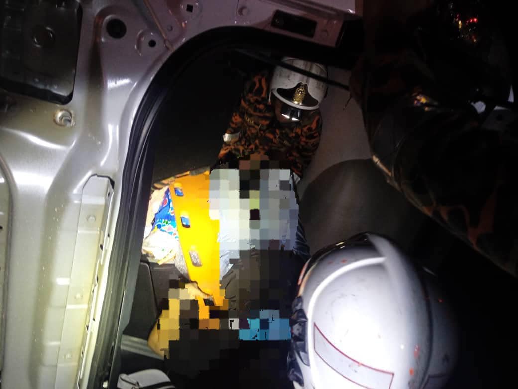 Anggota yang tiba di lokasi kejadian berjaya mengeluarkan mangsa dari kenderaan.”