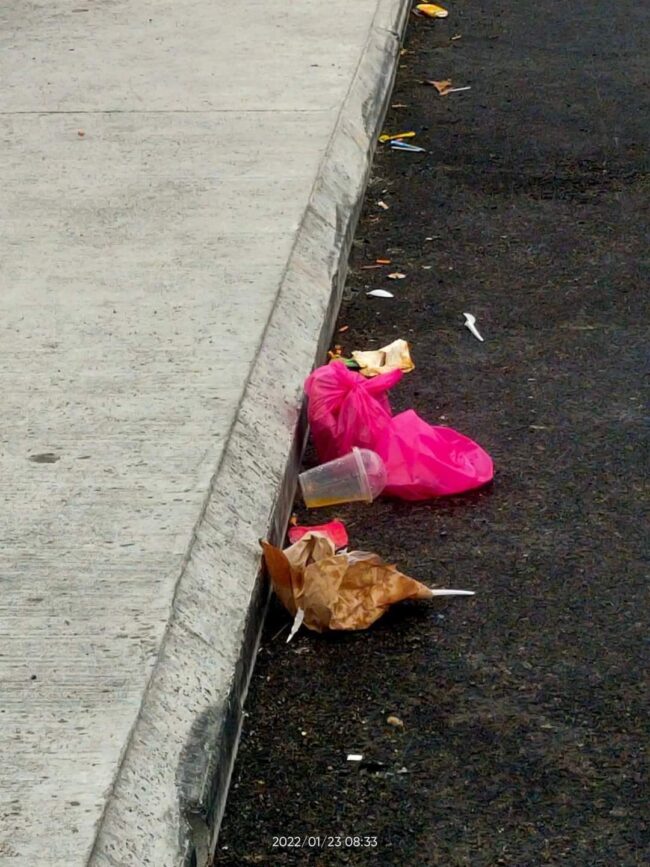 Berdasarkan foto dikongsikan netizen, sampah-sarap yang berserakan sekitar lebuh raya itu terdiri daripada sisa makanan dan minuman seperti plastik bungkusan air, botol air, tisu, puntung rokok dan sebagainya.