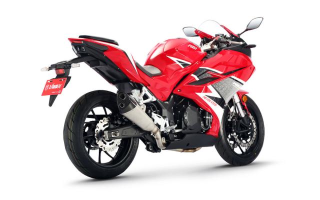 Model ini ialah Feely 450 yang sekali tengok memang boleh tahan juga rupanya. Nampak saja macam sama CBR250RR, tetapi tidaklah serupa. Kalau ada keburukan paling ketara pun ialah jenama pengeluar, dan strip fairing (bertulis ‘Never Stop’) yang entah apa motifnya dan nampak benar seperti dihasilkan air tangan pereka amatur atau pelatih dari universiti tempatan.