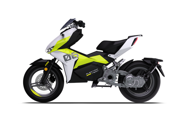 - Menggunakan sistem transmisi elektrik 2-kelajuan, yang pertama dalam segmen skuter elektrik dunia. Motor 6kW itu mampu menjana kuasa 10kW (13.4hp) dan tork 30Nm. Kelajuan maksimum 110kmj.