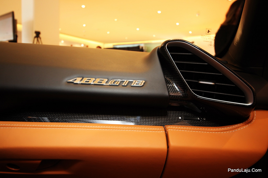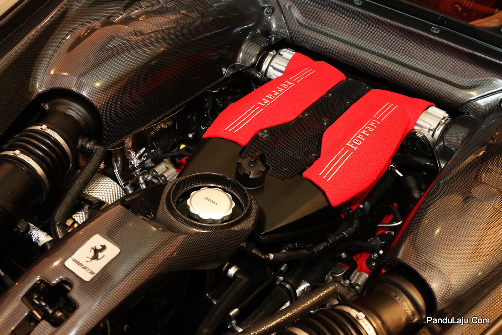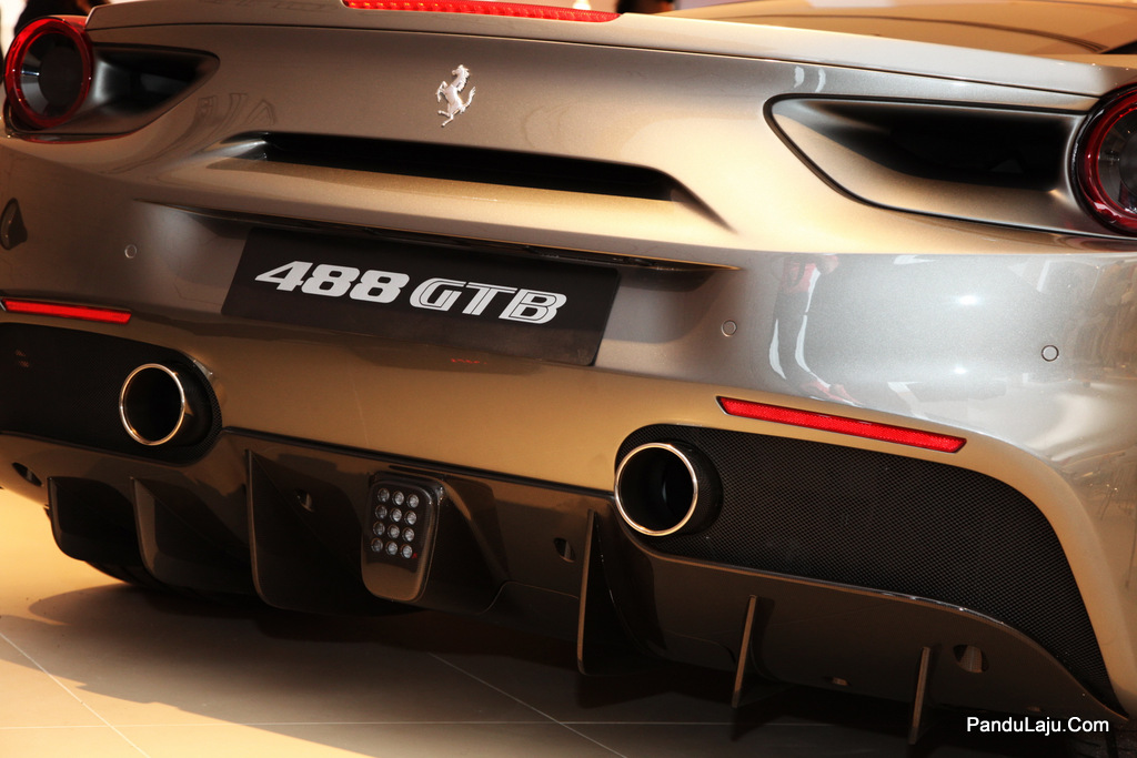 Ferrari 488 GTB_0028Hasil bantuan kotak gear transmisi klac duaan 7-kelajuan, model sport ini dijana unit enjin turbo berkembar 3,902cc V8 meledakkan kuasa setinggi 670hp pada 8,000rpm dengan tork 760Nm (3,000rpm)