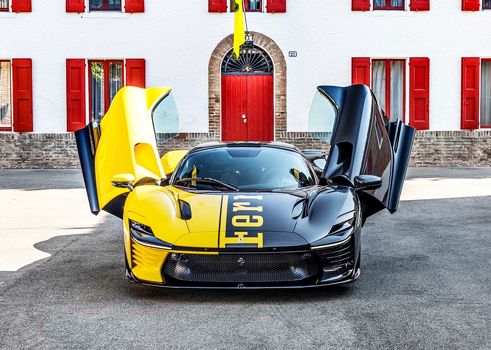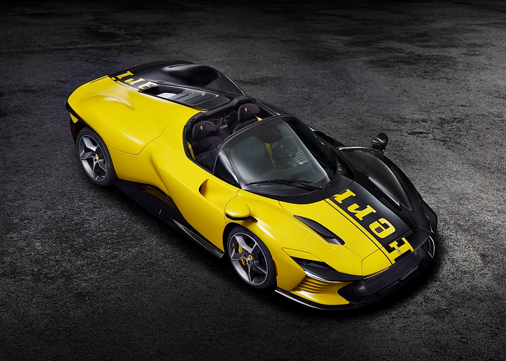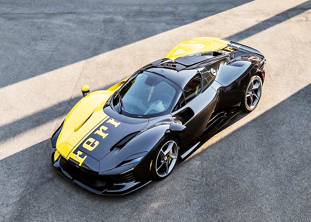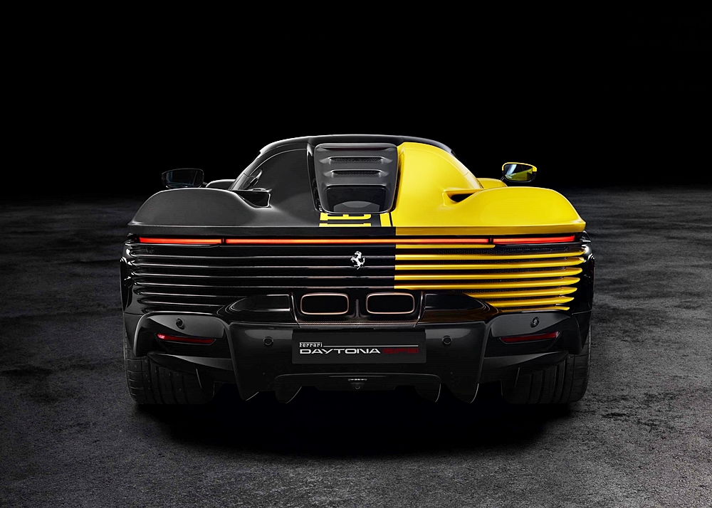 Ferrari Daytona SP3 Tailor Made ini menampilkan kemasan gentian karbon dua tona dan badan berwarna Giallo Modena. Bahagian seperti splitter hadapan, ambang sisi, dan difuser belakang diberikan kemasan hitam berkilat.