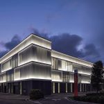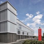 Mukaan dan bahagian dalaman utama direka oleh Mario Cucinella Architects. e-building direka dalam bentuk segi empat, berbeza daripada lenggokan badan kereta Ferrari.