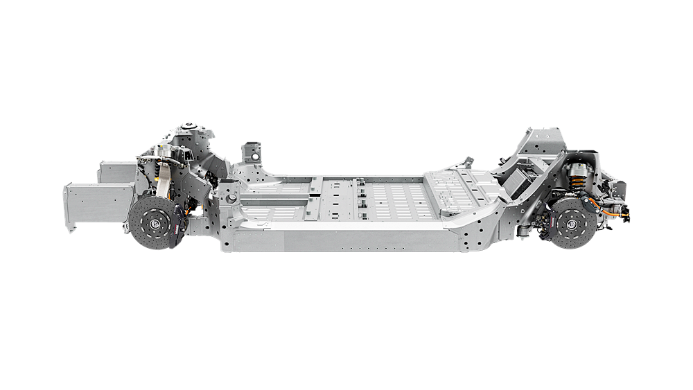 - Reka bentuk bateri diintegrasikan terus ke dalam casis sebagai elemen struktural, sekali gus merendahkan pusat graviti sebanyak 80 mm berbanding model enjin pembakaran dalaman konvensional.