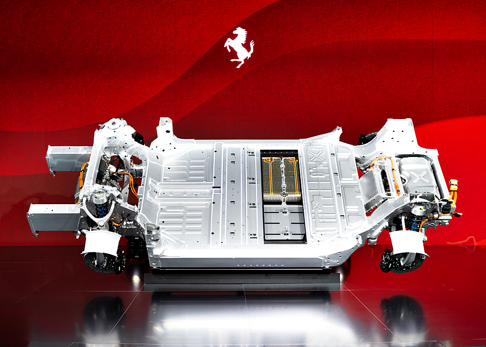 - Kawalan kuasa diuruskan oleh inverter Ferrari Power Pack dengan modul silikon karbida yang memastikan tahap kecekapan tenaga sehingga 93% pada tahap kuasa puncak.