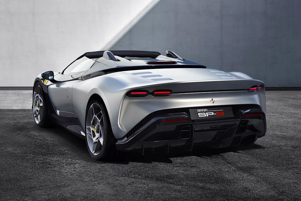 Ciri paling unik Ferrari SP-8 (2023) ialah rekabentuk tanpa bumbung yang tidak seperti F8 Tributo atau F8 Spider dengan bumbung boleh buka.