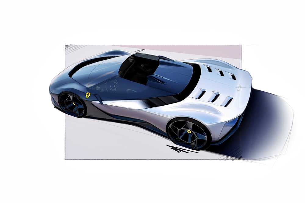 Ferrari SP-8 (2023) ini berkongsi platform, casis dan enjin V8 daripada F8 Spider yang seperti biasa direka pusat penggayaan Ferrari Centro Stile diketuai pereka dari Itali, Flavio Manzoni.
