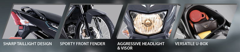 - Lampu depan direka lebih agresif, tetapi masih jenis mentol dan dipasangkan visor angin kecil untuk melindungi panel meter jenis analog yang direka baharu.