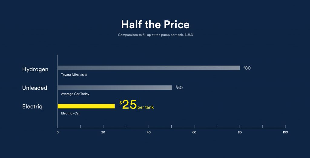 Tidak seperti kenderaan plug-in, mengisi tangki dengan Electriq-Fuel cuma mengambil masa 5 minit. Ini jelas lebih baik berbanding sistem mengecas pantas terkini kenderaan elektrik (EV) yang mengambil masa sekurang-kurangnya 20 minit. Malah, kebanyakan terknologi itu khas untuk kenderaan premium.