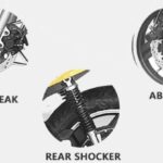 - Menggunakan suspensi fork teleskopik di depan dan dwi-absorber di belakang.