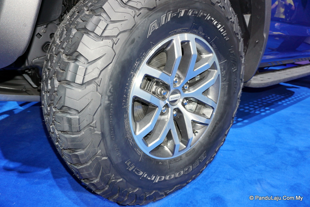 Lebih tampak hebat, ia turut dupadankan dengan rim bersaiz 17 inci dan ‘dikahwinkan’ bersama tayar BFGoodrich All-Terrain KO2 yang direka khas untuk kegunaan off-road. Ia mampu menawan kawasan off-road, berbatu dan pasir tanpa masalah.