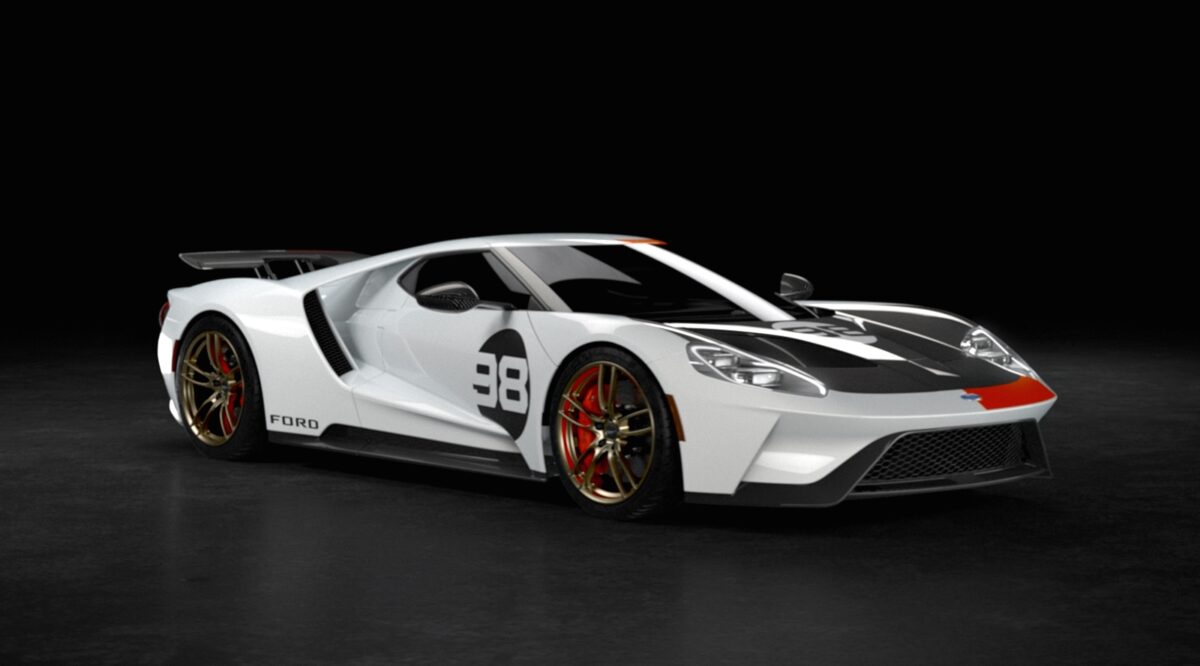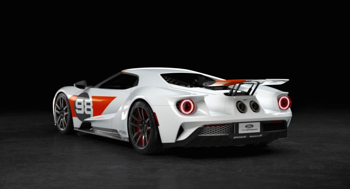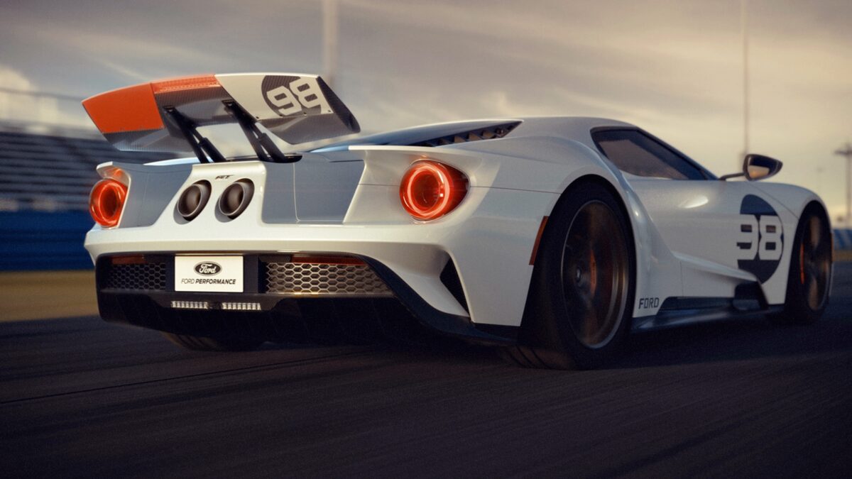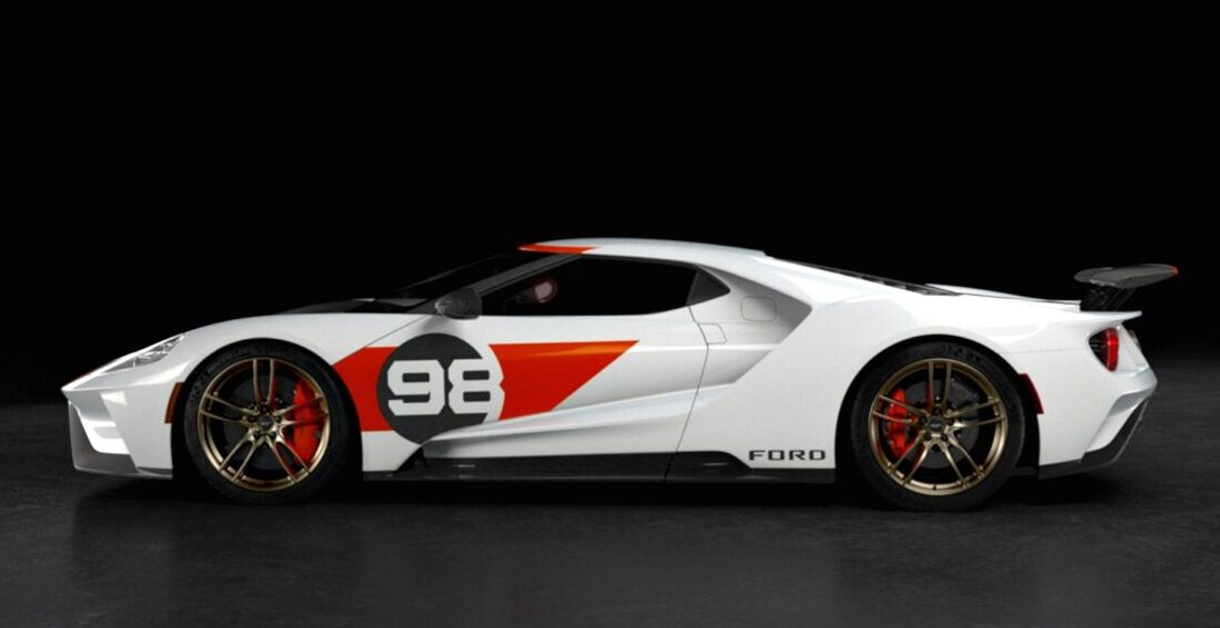 GT Heritage Edition (2021) dikeluarkan sebagai tribut kepada kejayaan perlumbaan Daytona 24 Hour Continental 1966. Sebelum Le Mans, inilah kemenangan Ford pertama dalam perlumbaan enduran 24 jam.