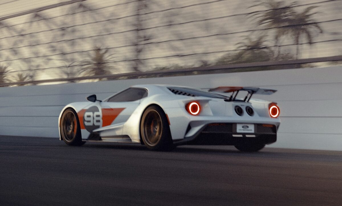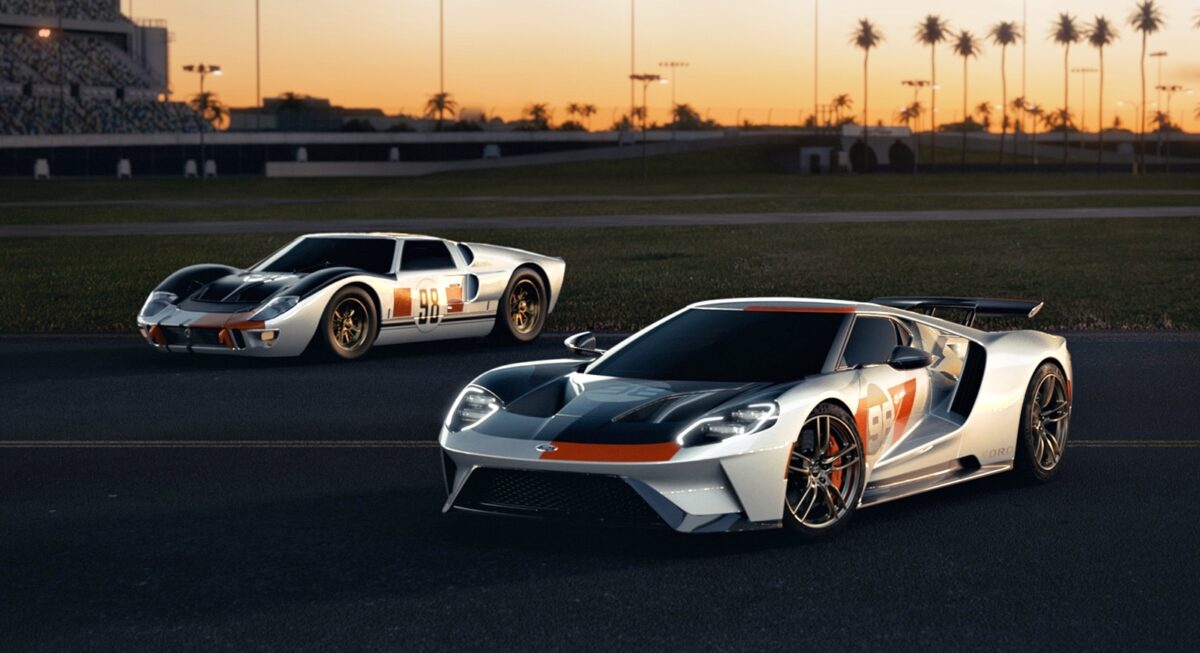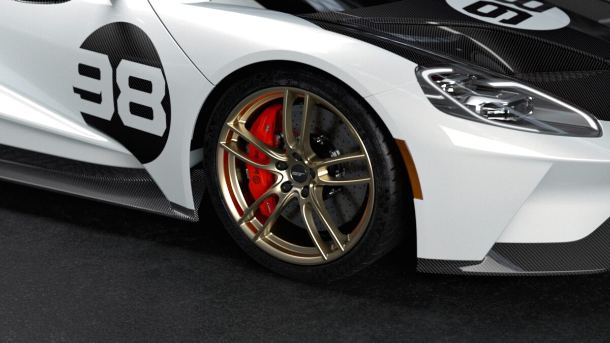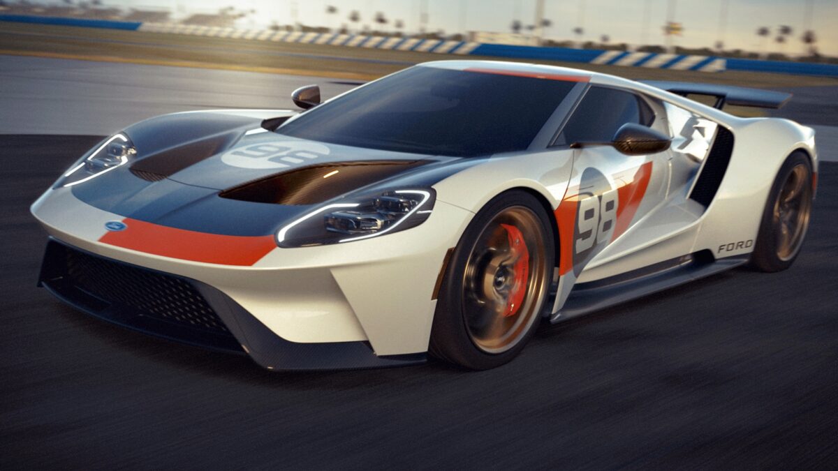 GT Heritage Edition (2021) dikeluarkan sebagai tribut kepada kejayaan perlumbaan Daytona 24 Hour Continental 1966. Sebelum Le Mans, inilah kemenangan Ford pertama dalam perlumbaan enduran 24 jam.