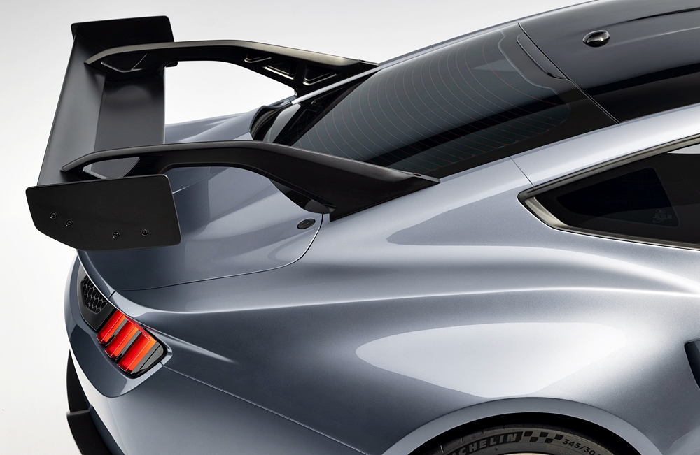 Dari segi rekabentuk, Ford Mustang GTD memang menyerlah dengan komponen aerodinamik seperti spliter depan, bonet dan fender berliang. Pelanggan juga ditawarkan sayap belakang aktif kawalan hidraulik pada pilar-C.