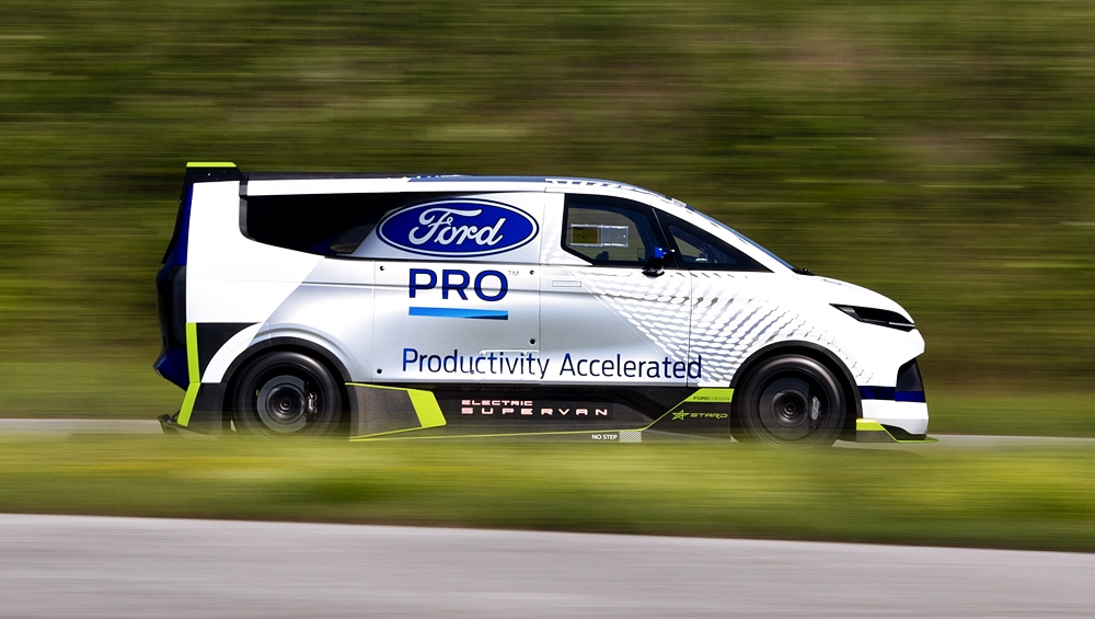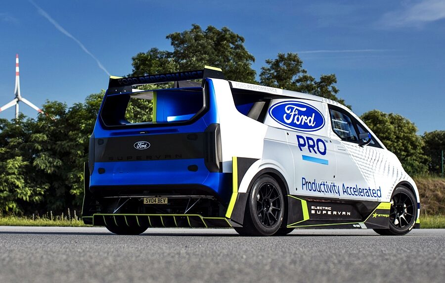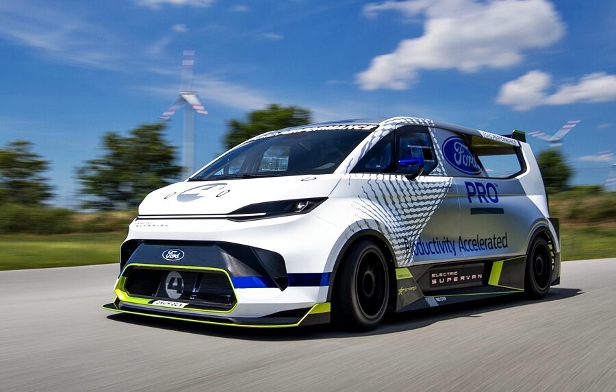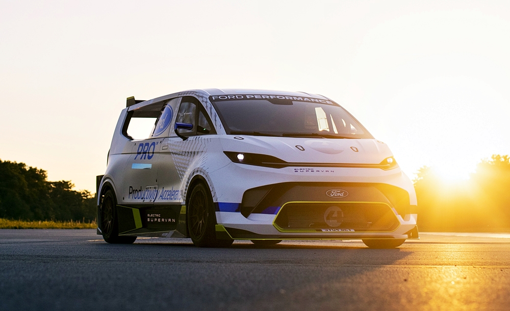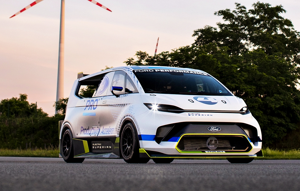 Ford Pro Electric SuperVan ini dipandu Romain Dumas dalam acara permotoran Goodwood dan pernah mencatatkan rekod di Goodwood dan Pikes Peak, termasuk menang empat kali perlumbaan enduran 24 Hours of Nürburgring.